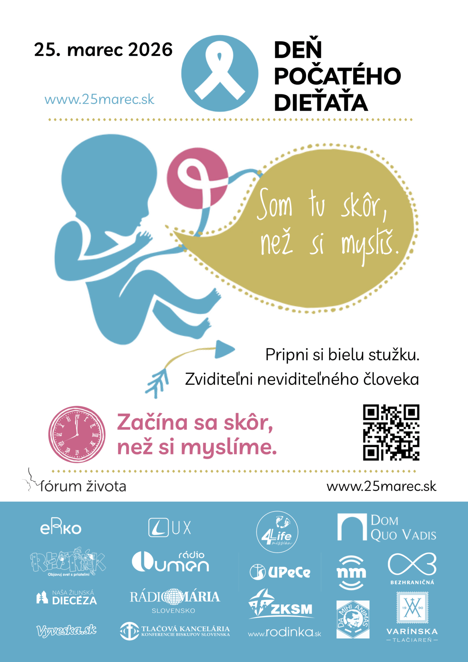 Fórum života predstavuje tohtoročnú kampaň Deň počatého dieťaťa 2026, ktorá nesie hlavné posolstvo „Život sa začína skôr, než si myslíme“. Kampaň upozorňuje na hodnotu ľudského života od jeho počiatku a na potrebu úcty, ochrany a podpory života v jeho najzraniteľnejšej fáze.
