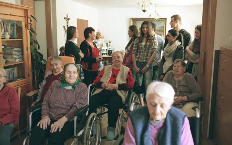 V utorok, 19. mája strávila skupina 11 študentov nezabudnuteľné chvíle s obyvateľmi nášho domu. Chlapci našim klientom ukázali, ako funguje internet, „vygooglili“ ich rodnú obec i pohľad z vtáčej perspektívy, dokonca púšťali najnovšie hity a všetko možné, čo si len klienti zažiadali. Dievčatá zase pomohli ošetrujúcemu personálu sprevádzať klientov na rehabilitáciu či zdravotné prechádzky po okolí a spoznávali tak prácu v našom zariadení.